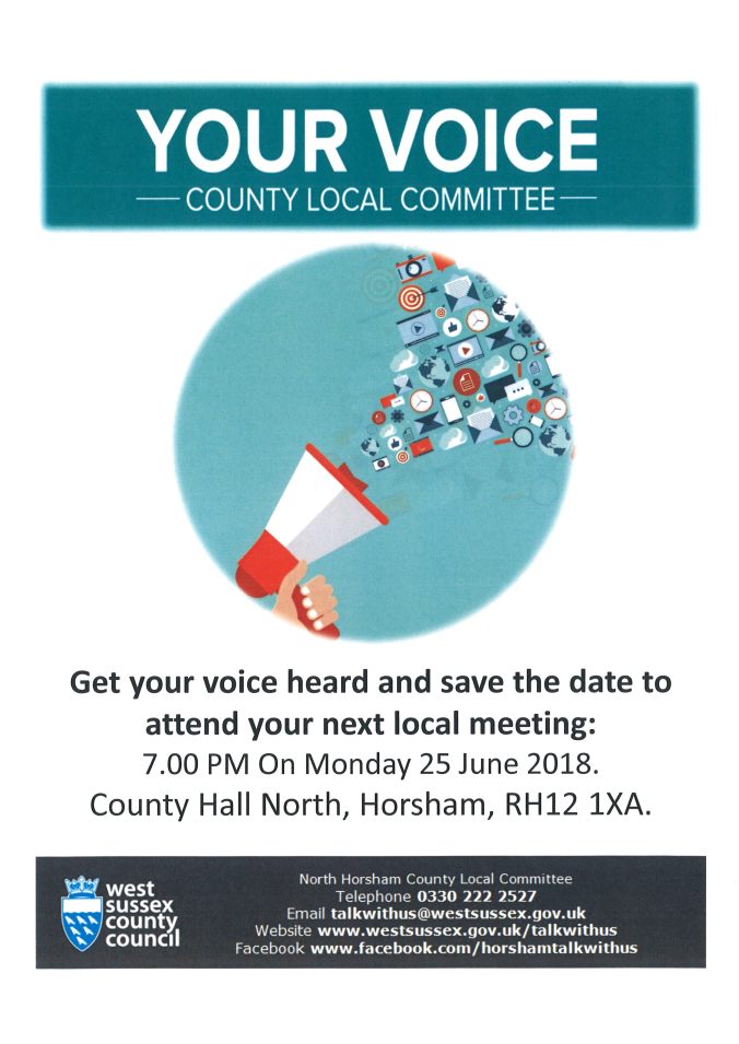 County Local Committee 3 May , 20183 May , 2018 / northhorshamparishcouncil West Sussex County Council holds regular meetings where local residents can ask questions and raise their concerns. Details of the next meeting can be found below. Share this: Share on X (Opens in new window) X Share on Facebook (Opens in new window) Facebook Like Loading...