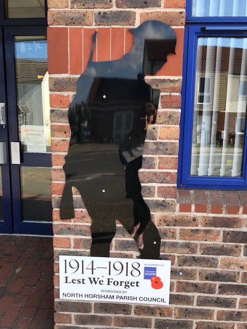 Residents may have noticed two ‘Silent Soldiers’ erected within the parish. One has been placed on the front of Roffey Millennium Hall, the other at Holbrook Tythe Barn. The silhouettes are part of an initiative by the Royal British Legion to mark the final year of the World War One centenary and part of a movement to say ‘Thank You’ to the First World War generation who served, sacrificed, rebuilt and changed the nation.