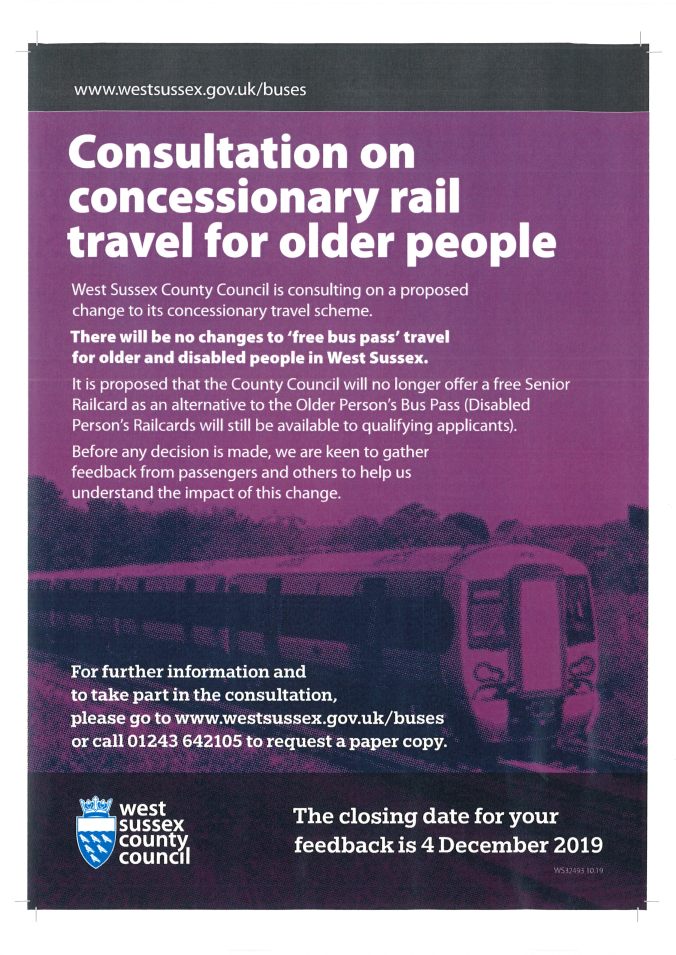Share this: Click to share on X (Opens in new window) X Click to share on Facebook (Opens in new window) Facebook Like Loading... Concessionary rail travel- what do you think? 25 October , 2019 / northhorshamparishcouncil / Leave a comment