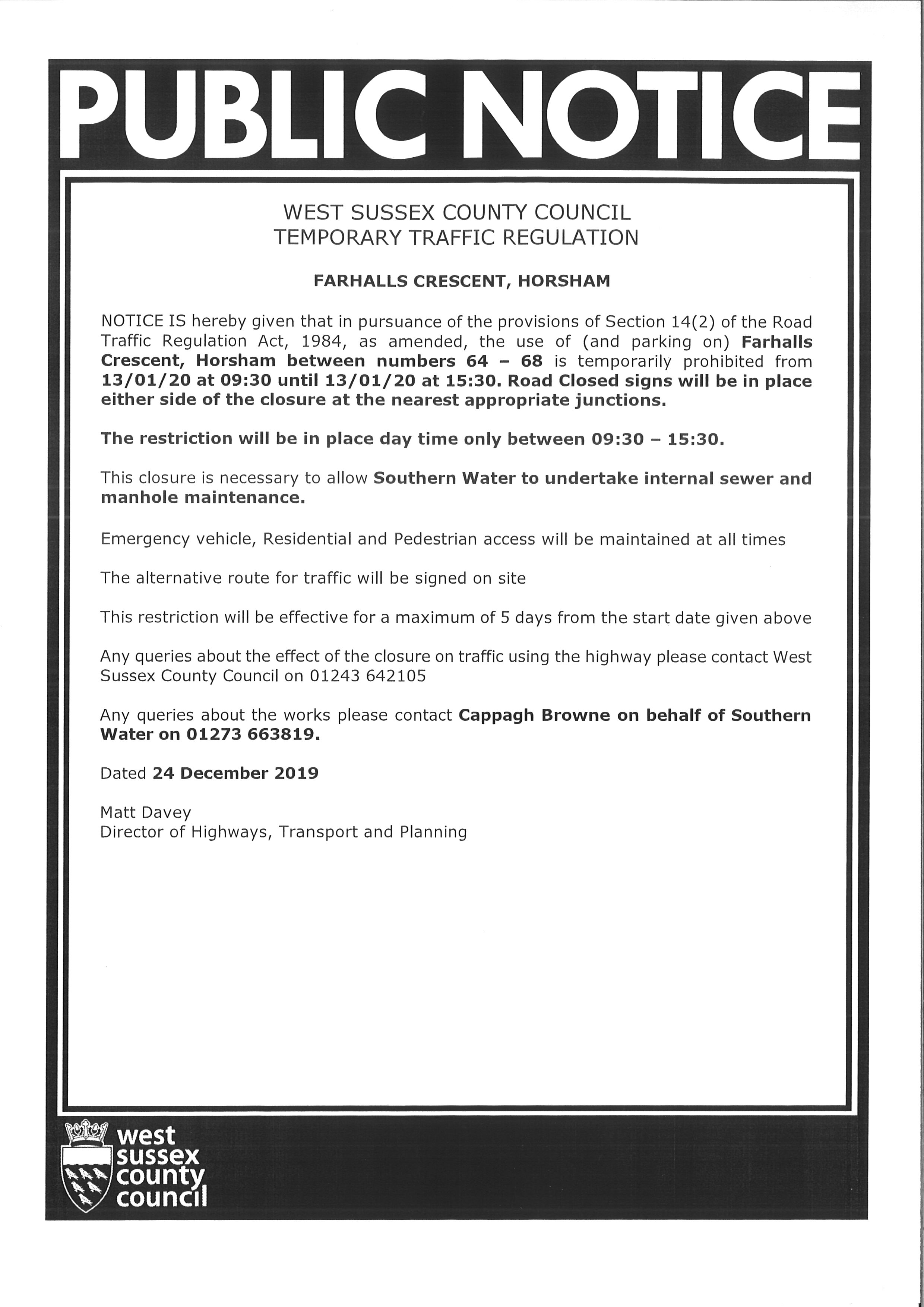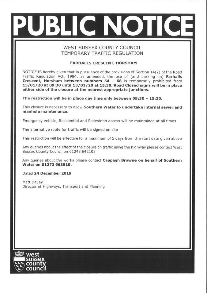 Share this: Click to share on X (Opens in new window) X Click to share on Facebook (Opens in new window) Facebook Like Loading... Road closure notice – Farhalls Crescent 24 December , 2019 / northhorshamparishcouncil / Leave a comment