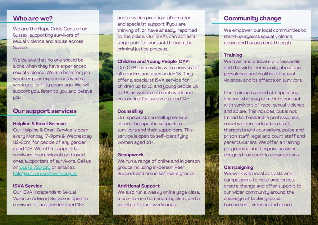 For information more on services specific to West Sussex please contact the Welcome Team on 01273 203380 where they will be able to explain what services are available where, and what alternative provision is available locally if they are not able to support.