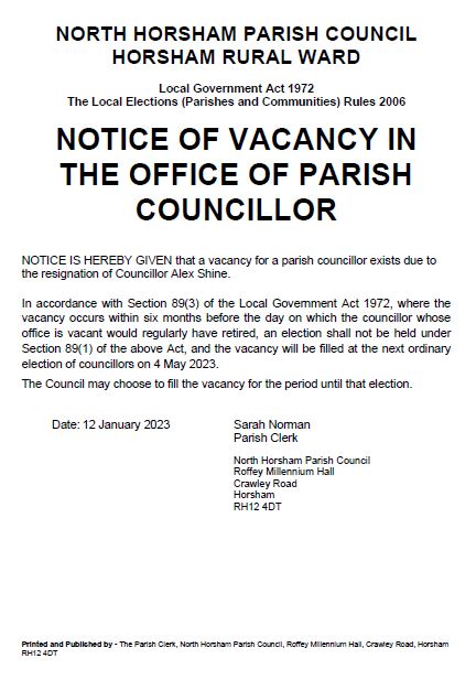 Vacancy for Parish Councillor 23 January , 202324 January , 2023 / northhorshamparishcouncil Share this: Click to share on X (Opens in new window) X Click to share on Facebook (Opens in new window) Facebook Like Loading...