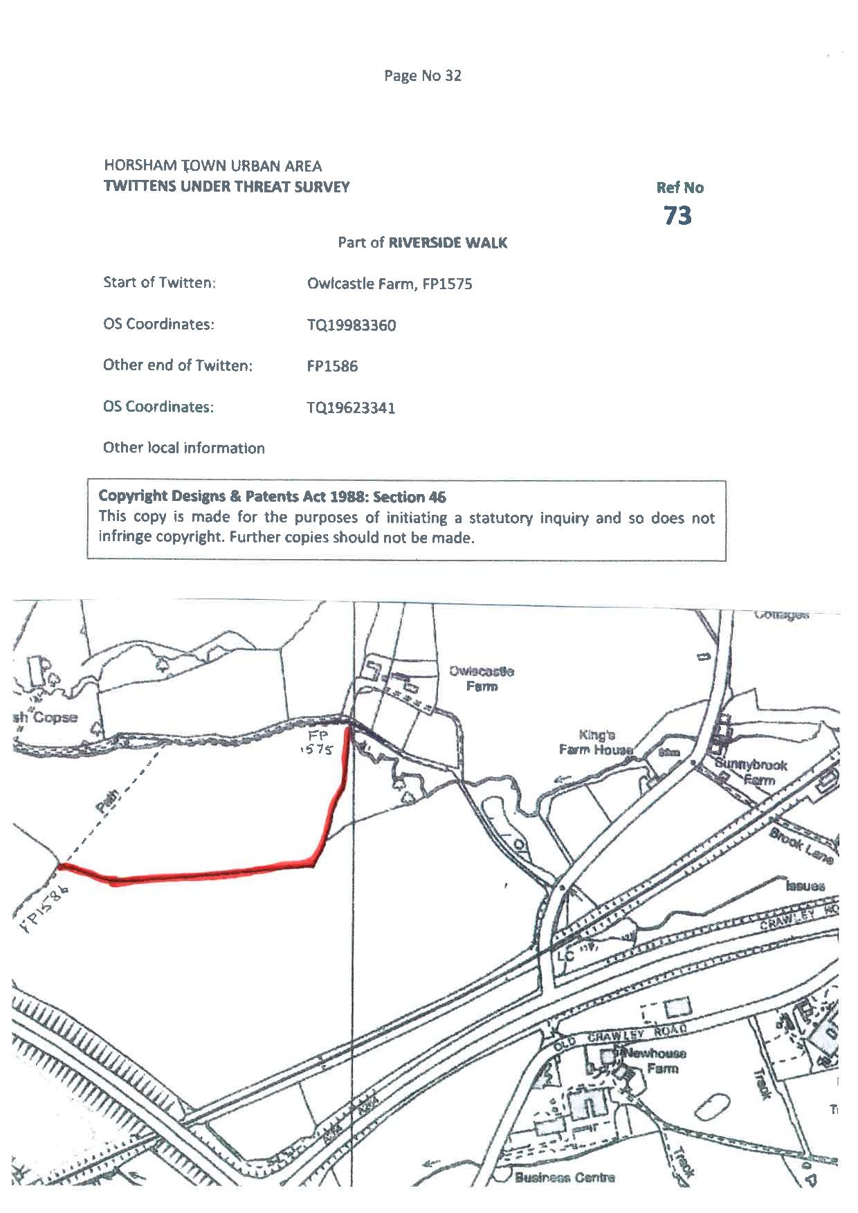 The loss of Public Footpaths Can you help Horsham Society to save some of the footpaths in North Horsham that are in danger because they are not registered? If you have used the paths indicated below for a period of 20 years and you are willing to support them becoming registered, please get in touch with the Parish Council. Share this: Click to share on X (Opens in new window) X Click to share on Facebook (Opens in new window) Facebook Like Loading...